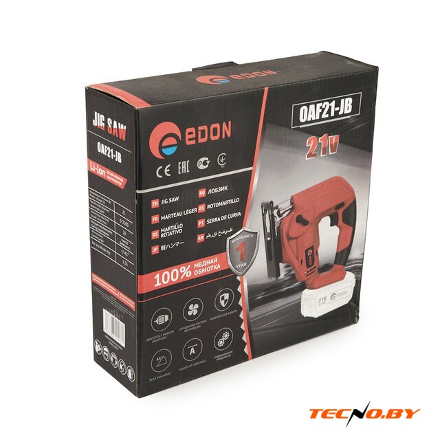 | Комплект поставки | В комплект поставки входит: аккумулятор Edon LIO/OAF-3,0A∙h и зарядное устройство Edon OAF21-1100CB. |