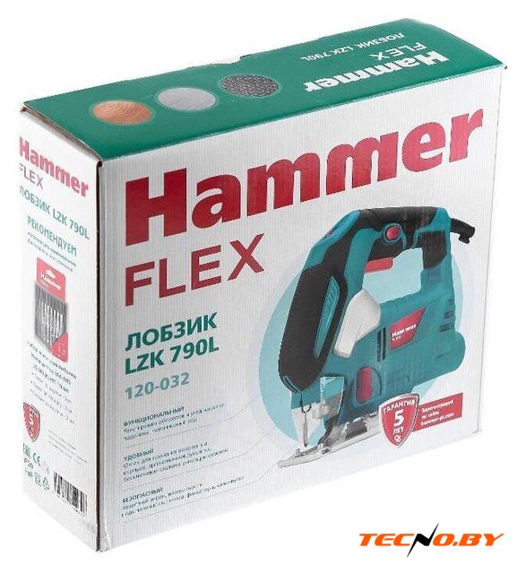 рукоятка-скоба, питание: сеть, глубина пропила: 100 мм (дерево), 10 мм (сталь), 800–3000 ходов/мин, ход пилки: 23 мм, 2.5 кг