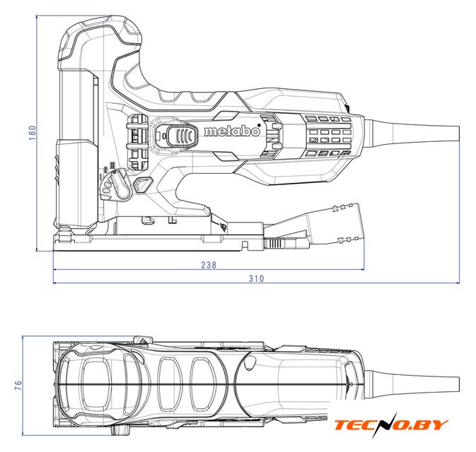 700 Вт, рукоятка-скоба, глубина пропила: 80 мм (дерево), 10 мм (сталь), 1000–3200 ходов/мин, ход пилки: 20 мм, 2.2 кг