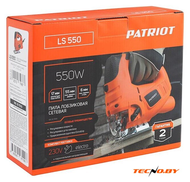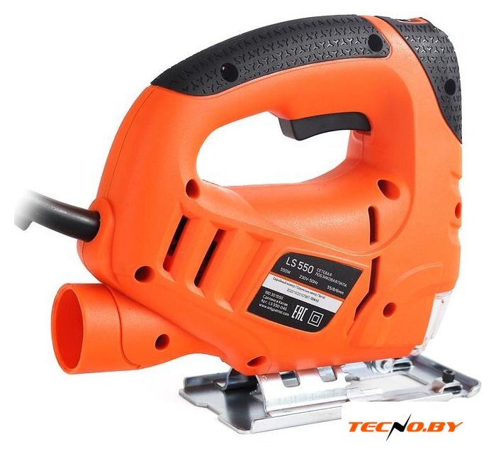 рукоятка-скоба, питание: сеть, 550 Вт, глубина пропила: 65 мм (дерево), 8 мм (сталь), 0–3000 ходов/мин, 2.2 кг