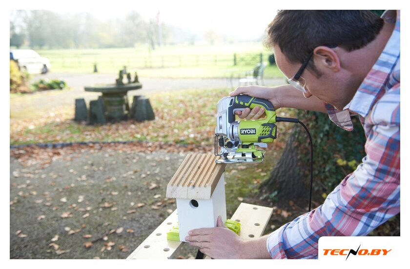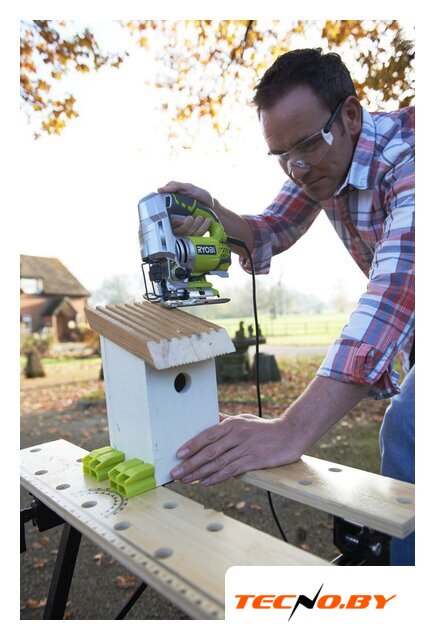 рукоятка-скоба, питание: сеть, глубина пропила: 65 мм (дерево), 6 мм (сталь), 800–3100 ходов/мин, ход пилки: 19 мм, 2.1 кг