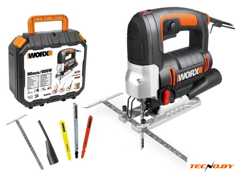 | Комплект поставки | Лобзик электрический WORX WX478.1;- Пилка по металлу;- Пилка по дереву;- Пилка по алюминию;- Ключ-шестигранник;- Параллельная направляющая;- Вакуумный адаптер;- Защитная пластина для ног;- Защита от раскалывания;- Кейс; |