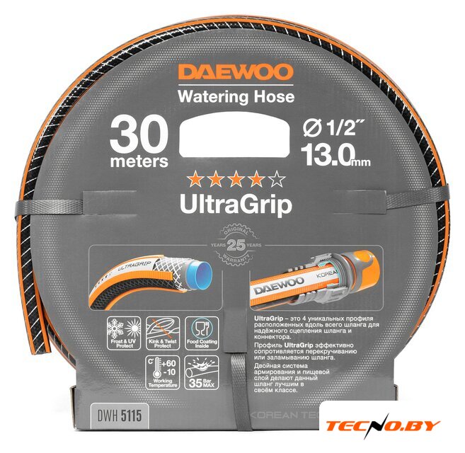 стандартный с распылителем, ПВХ, армированный, гладкая поверхность, диаметр 13 мм, длина 17 м, оранжевый/черный