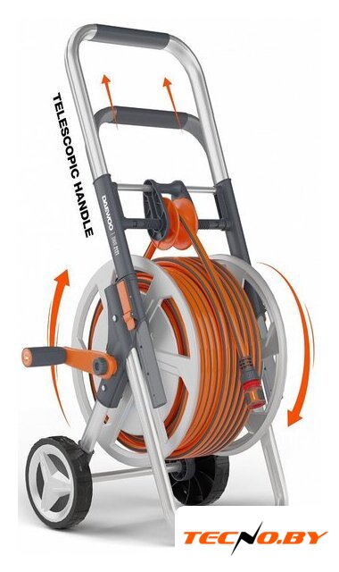 тележка со шлангом с распылителем, ПВХ, армированный, гладкая поверхность, диаметр 13 мм, длина 30 м, оранжевый/серый