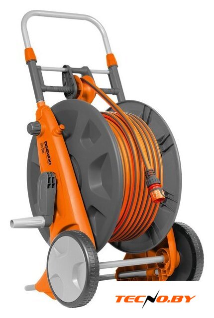 тележка со шлангом с распылителем, ПВХ, армированный, гладкая поверхность, диаметр 13 мм, длина 25 м, оранжевый/серый