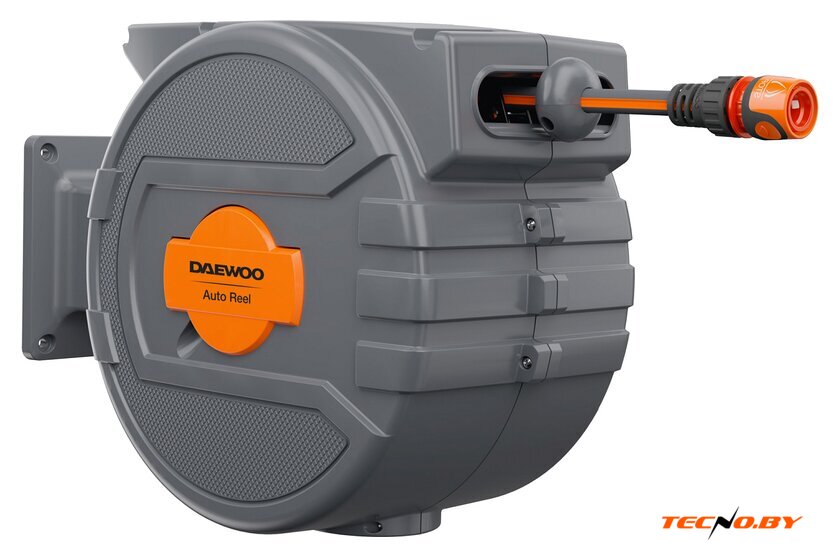 тележка со шлангом с распылителем, ПВХ, армированный, гладкая поверхность, диаметр 13 мм, длина 25 м, оранжевый/серый