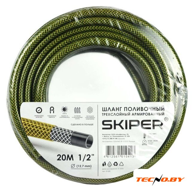 стандартный, ПВХ, армированный, гладкая поверхность, диаметр 15 мм, длина 50 м, оранжевый/серый/черный