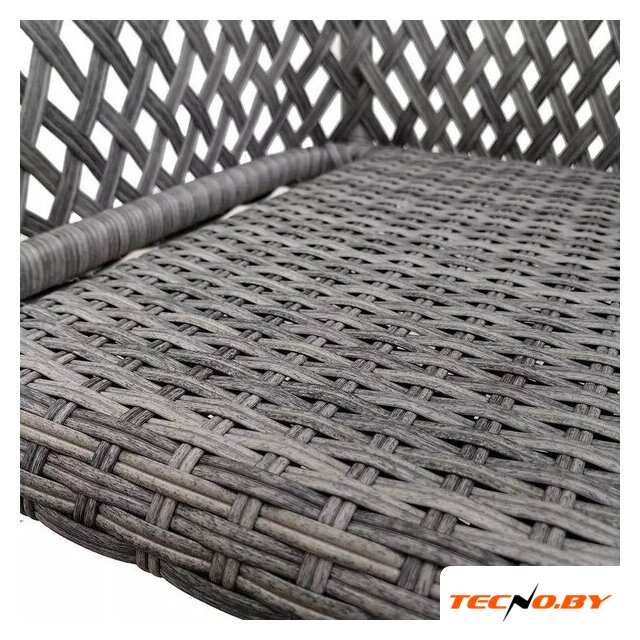 стол + 2 кресла, стол: 406×420×400 мм, основание - искусственный ротанг/сталь, столешница - стекло, сиденье: 580×550 мм, материал: ткань