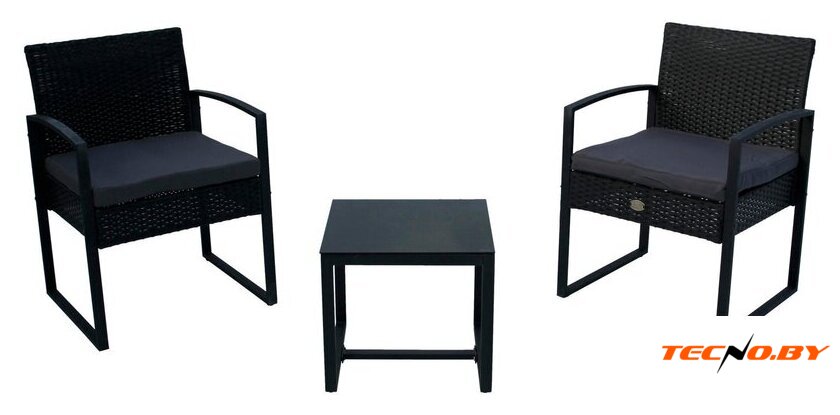 стол + 2 стула, стол: 600×600×720 мм, основание - сталь, столешница - искусственный ротанг, сиденье: 530×470 мм, материал: искусственный ротанг