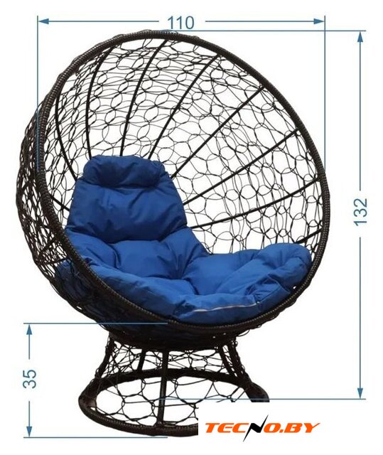 основание - искусственный ротанг/металл, сиденье: 770×810 мм, материал: ткань
