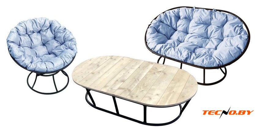 диван + 2 кресла + столик, стол: 1200×600×706 мм, основание - сталь, столешница - стекло, сиденье: 650×640 мм, материал: ткань