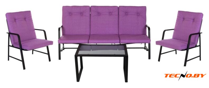 диван + 2 кресла + столик, стол: 750×410×445 мм, основание - сталь, столешница - стекло, сиденье: 565×740 мм, материал: ткань
