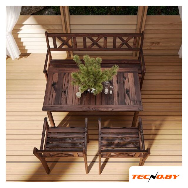 стол + 2 стула, стол: 600×600×720 мм, основание - сталь, столешница - искусственный ротанг, сиденье: 530×470 мм, материал: искусственный ротанг