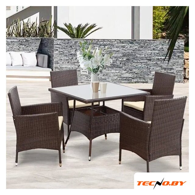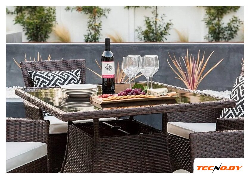 стол + 1 скамья + 2 кресла, стол: 790×540×380 мм, основание - пластик, столешница - пластик, сиденье: 650×650 мм, материал: пластик