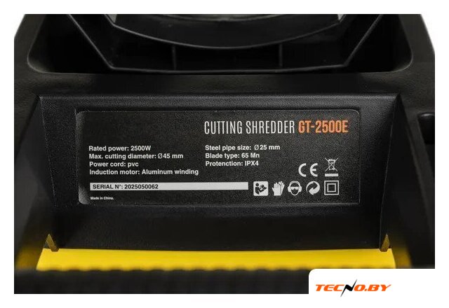 электрический двигатель, 2.5 кВт, толщина веток до 40 мм, контейнер 0 л, 10.6 кг