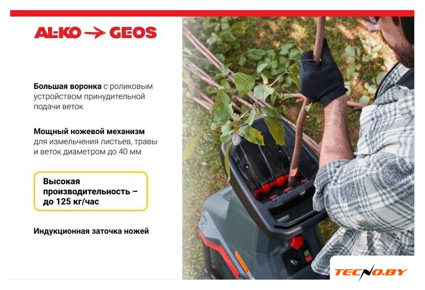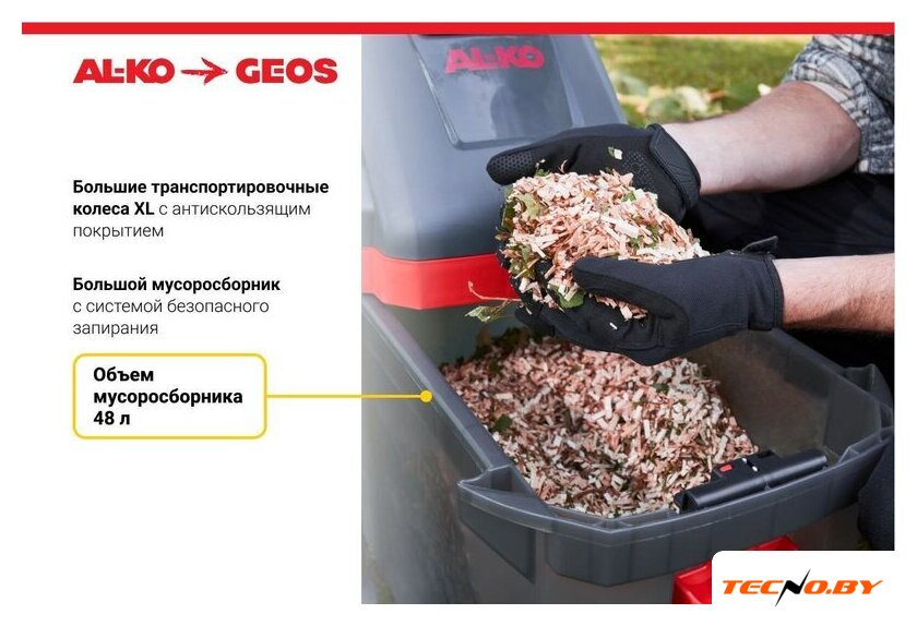 электрический двигатель, 3 кВт, толщина веток до 45 мм, контейнер 60 л, 22.5 кг