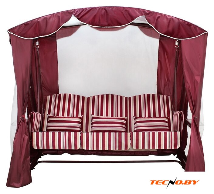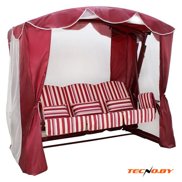 Аксессуары | 3 подушки-кресла с оборкой (увеличенная спинка, закругленный верх), тент-шатер с антимоскитной сеткой, 3 дополнительные подушки, 2 мягких подлокотника, 2 подстаканника, 2 металлических тентодержателя, светодиодный фонарь. |