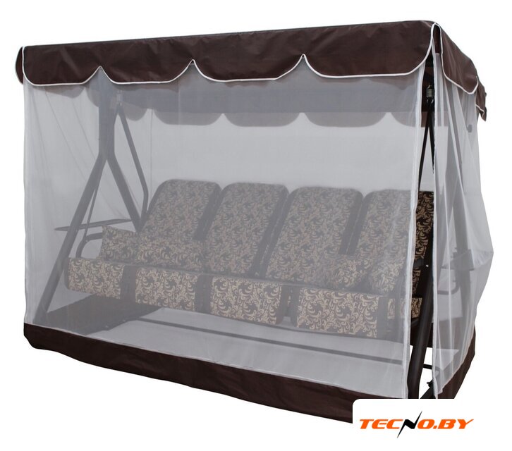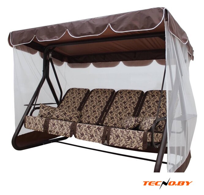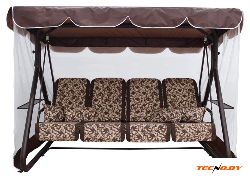 Эти садовые качели поставляются с полным набором аксессуаров для вашего удобства. В комплект входят 4 дополнительные подушки, большой тент с антимоскитной сеткой для защиты от насекомых и два металлических тентодержателя. Также предусмотрены два больших подстаканника для комфортного размещения напитков.