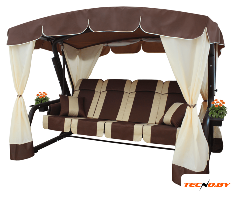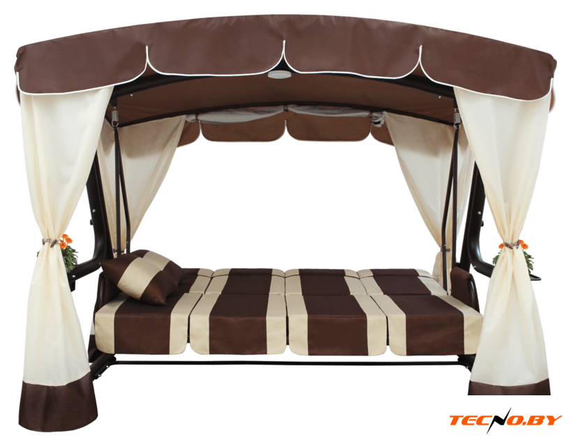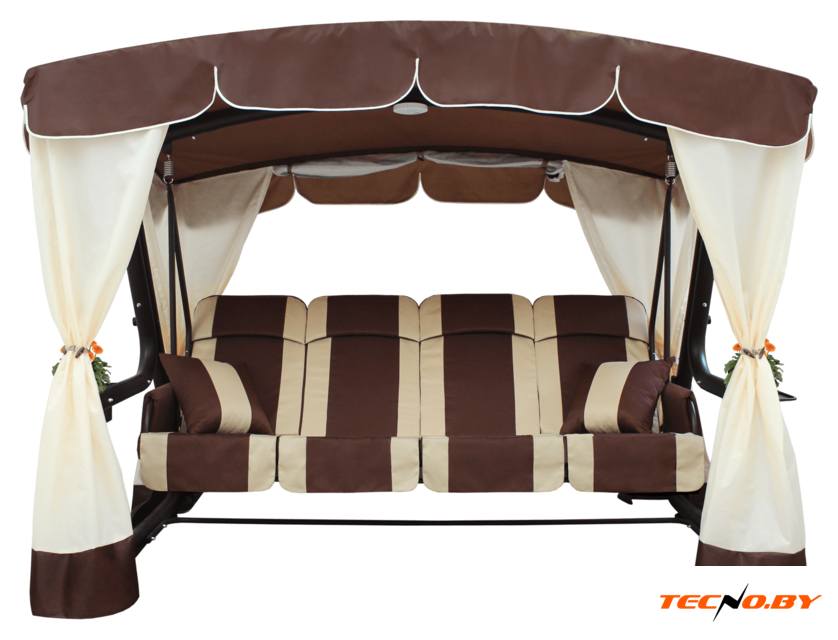 Качели рассчитаны на четырех человек, обеспечивая отличную возможность для отдыха в кругу семьи или друзей. Стальной каркас цвета шоколад придает конструкции элегантность и стиль, а его прочность гарантирует долговечность. Сиденье оснащено мягкой обивкой, обеспечивая дополнительный комфорт во время использования.