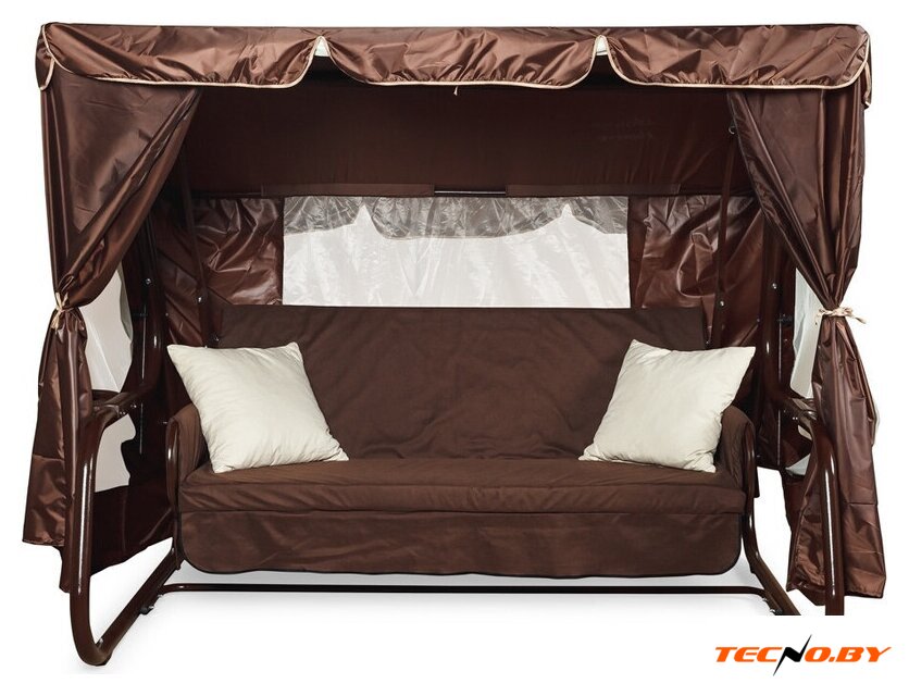 Каркас качелей выполнен из прочной стали, что гарантирует долговечность и устойчивость. С толщиной стоек в 51 мм, качели способны выдержать максимальную нагрузку до 480 кг, что делает их безопасными и долговечными. Надежность конструкции дополнительно усиливается противомоскитной сеткой, обеспечивающей комфортный отдых без насекомых.