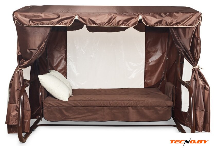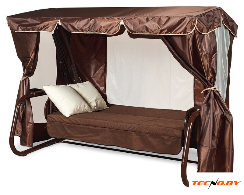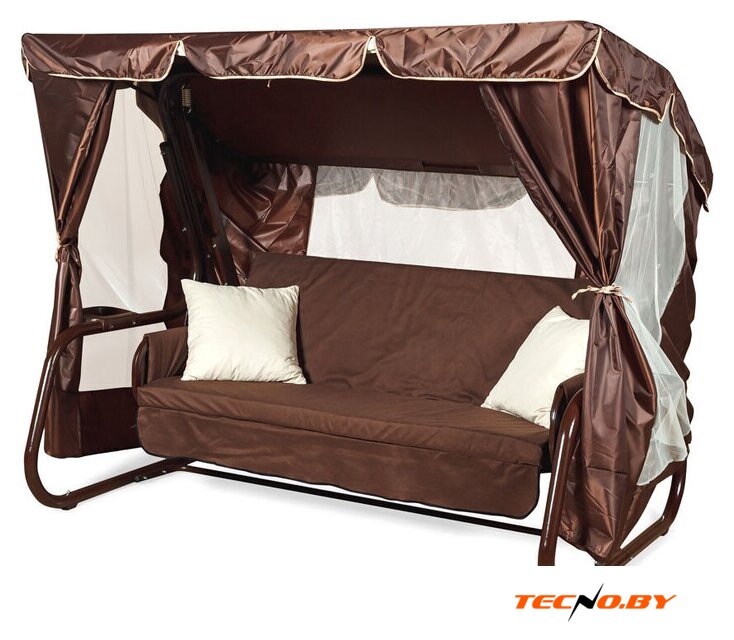 Отсутствие брусков делает конструкцию менее массивной, придавая ей легкость и изящество. Противомоскитная сетка является приятным дополнением, обеспечивающим защиту от насекомых, без ущерба для прохлады и свежести, которые дарит ветерок. Хотя в комплекте отсутствует чехол, качели могут быть дополнены защитными аксессуарами по вашему выбору.