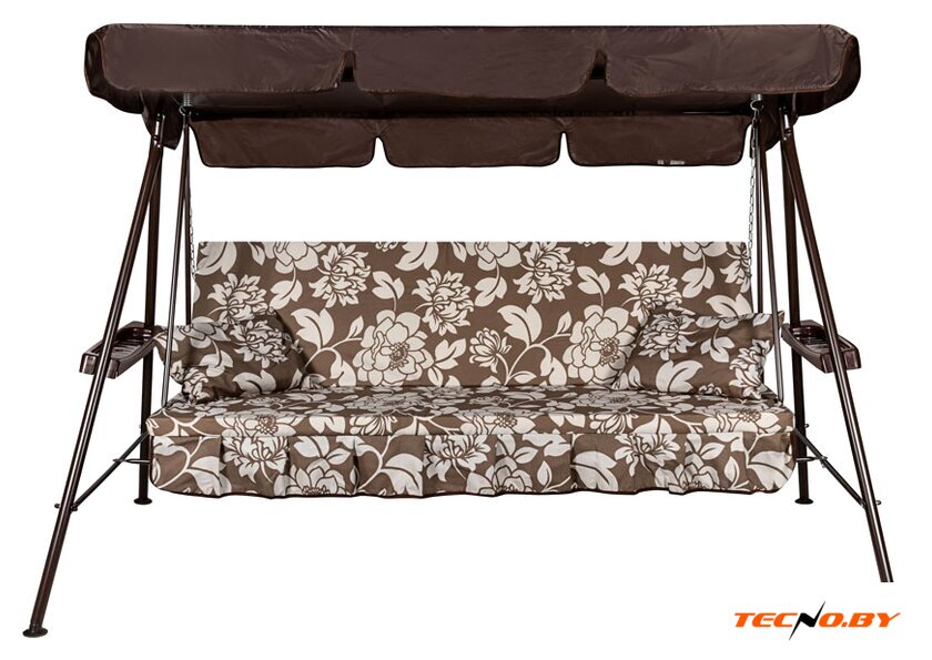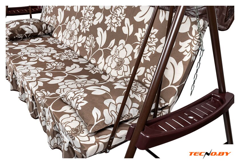 Благородный коричневый цвет конструкции гармонично вписывается в любой ландшафтный дизайн. Это классический оттенок, который подчеркнет природную красоту вашего сада и сделает качели привлекательным элементом вашего открытого пространства.