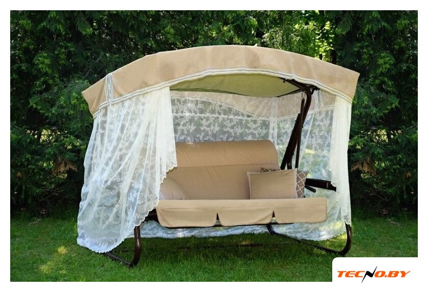 Садовые качели комплектуются противомоскитной сеткой, обеспечивая защиту от надоедливых насекомых. Теперь ничто не нарушит ваш покой и вы сможете наслаждаться отдыхом на свежем воздухе, не беспокоясь о многочисленных укусах летом.