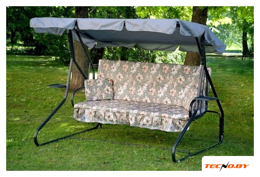 Садовые качели имеют длину 2115 мм, ширину 1543 мм и высоту 1600 мм, что делает их подходящими для размещения как на небольшой террасе, так и в широком саде. Вес конструкции составляет 37.8 кг, что позволяет легко перемещать качели при необходимости.