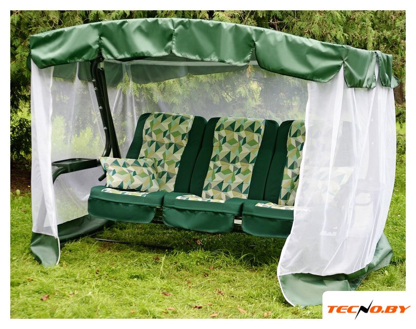 Качели комплектуются противомоскитной сеткой, обеспечивающей дополнительное удобство. Вам не придется беспокоиться о комарах, даже если вы решите провести вечер в саду. Сетка легко устанавливается и снимается, что добавляет еще больше комфорта и безопасности в ваше времяпрепровождение.