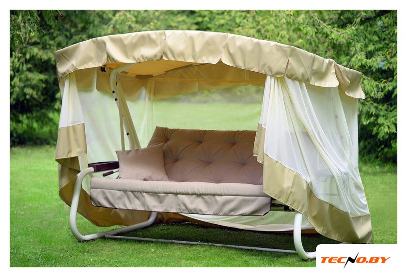 Комплект садовых качелей включает противомоскитную сетку, которая защитит вас и вашу семью от насекомых в теплые вечера. Чехол не предусмотрен, однако конструкция легко очищается и требует минимального ухода.