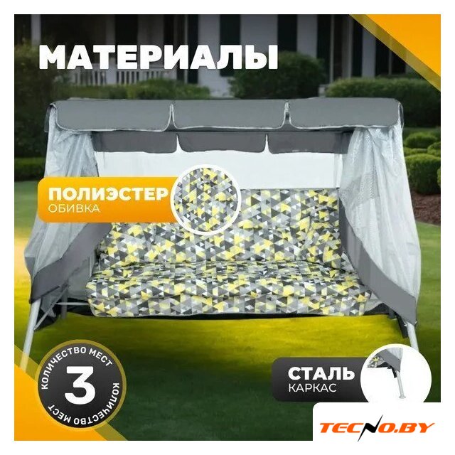 садовые качели, раскладные, 3-местные, каркас: сталь, сидение: стальная сетка, до 280 кг