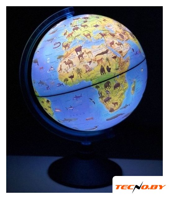 тип зоогеографический, диаметр 25 см, настольное размещение, материал шара пластик, подсветка