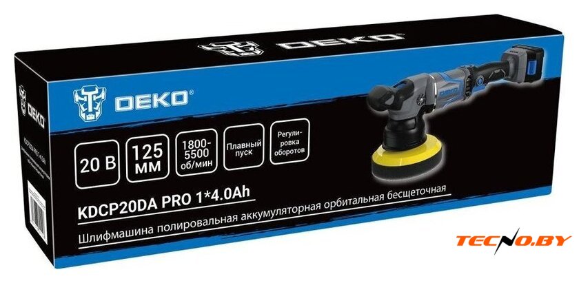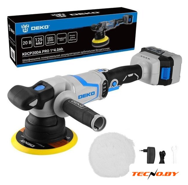 | Комплект поставки | - Шлифмашина – 1 шт.- Аккумулятор 4,0 Ач – 1 шт.- Зарядное устройство – 1 шт.- Опорная тарелка – 1 шт.- Полировальный круг (шерстяной) – 1 шт.- Дополнительная рукоятка – 1 шт.- Ключ – 1 шт.- Руководство по эксплуатации- Коробка |