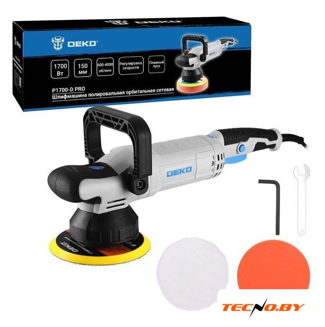 Комплект поставки | - Полировальная машина – 1 шт.- Опорная тарелка – 1 шт.- Полировальный круг (шерстяной, поролоновый) – 2 шт.- Дополнительная рукоятка – 1 шт.- Гаечный ключ - 1 шт.- Винт – 2 шт.- Шестигранный ключ – 1 шт.- Угольные щетки – 2 шт.- Руководство по эксплуатации- Коробка |