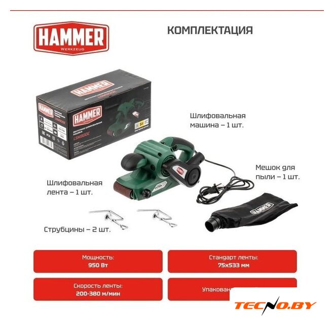 | Комплект поставки | - Шлифмашина ленточная - 1 шт.- Лента шлифовальная - 1 шт.- Мешок-пылесборник - 1 шт.- Струбцины - 2 шт.- Инструкция- Упаковка |