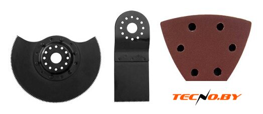 | Комплект поставки | - Шестигранник- Сегментная дисковая пила HSS диаметром 88 мм- Биметаллическая дисковая пила E-cut - 35 мм- Приспособление для полировки деталей со шкуркой - 90 мм- Комплект шкурок зернистостью 60/120/180 - 6 шт.- Пластиковый кейс |