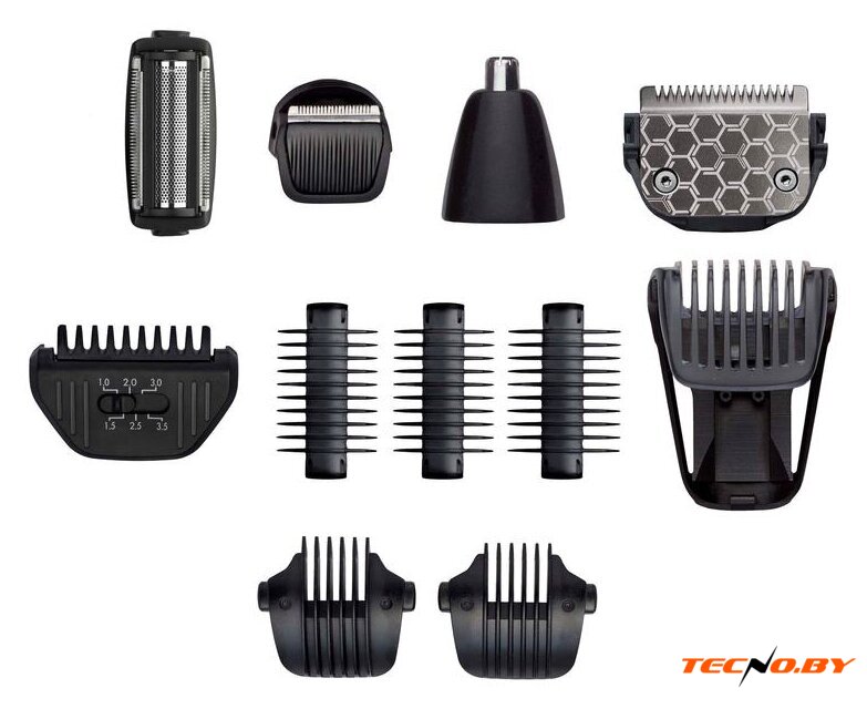 | Насадки | гребни, точный триммер, для носа и ушей, бритва |