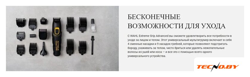 для прически/для бороды и усов/для носа и ушей/для тела, длина стрижки: 0.5-12 мм, питание от аккумулятора, автономная работа: 90 мин, влажная чистка головки, не требует смазки