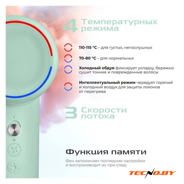 2000 Вт, ионизация, независимая регулировка температуры, зеленый