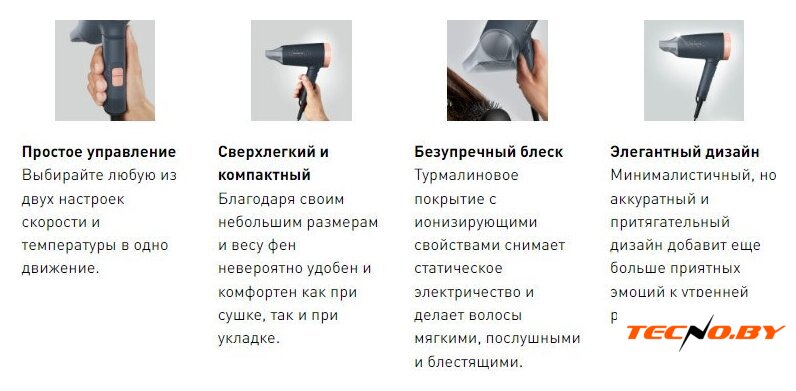 2400 Вт, AC мотор, ионизация, независимая регулировка температуры, шнур 2 м, черный