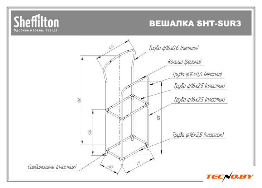 настенное размещение, металл/пластик, 7 крючков, 1 полка, 87.5x27x27 см