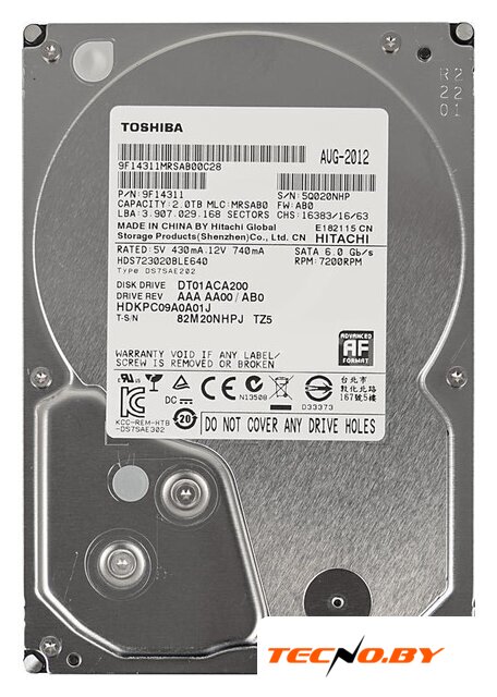 3.5", SATA 3.0 (6Gbps), 5400 об/мин, буфер 256 МБ, время доступа 6 мс