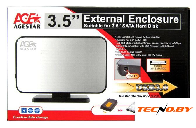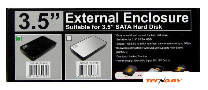 для дисков 2.5"/3.5" SATA, интерфейс USB 3.0, корпус пластик, цвет черный