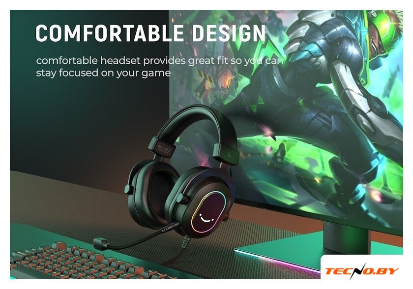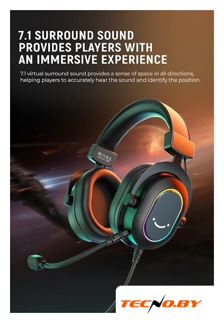 наушники с микрофоном, мониторные (охватывающие), геймерские, 20-20000 Гц, кабель 2.2 м