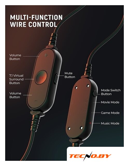 | Функции управления звуком | активация объемного звучания, переключение пресетов эквалайзера, приглушение микрофона (mute) |