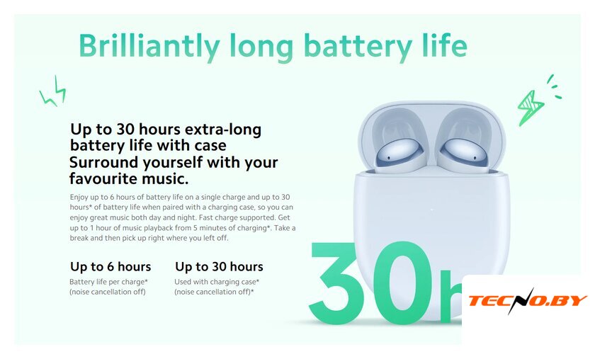 | Время работы с зарядным кейсом | 30 ч (без использования ANC) |