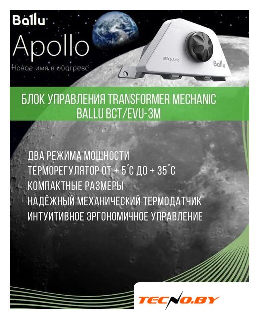 | Комплектация | Отопительный модуль конвектора Ballu BEC/AT-1500; Термостат для климатической техники Ballu Apollo Transformer BCT/EVU-3M |