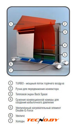 конвектор, 2000 Вт, термостат, настенный монтаж, управление механическое, площадь обогрева 25 м2