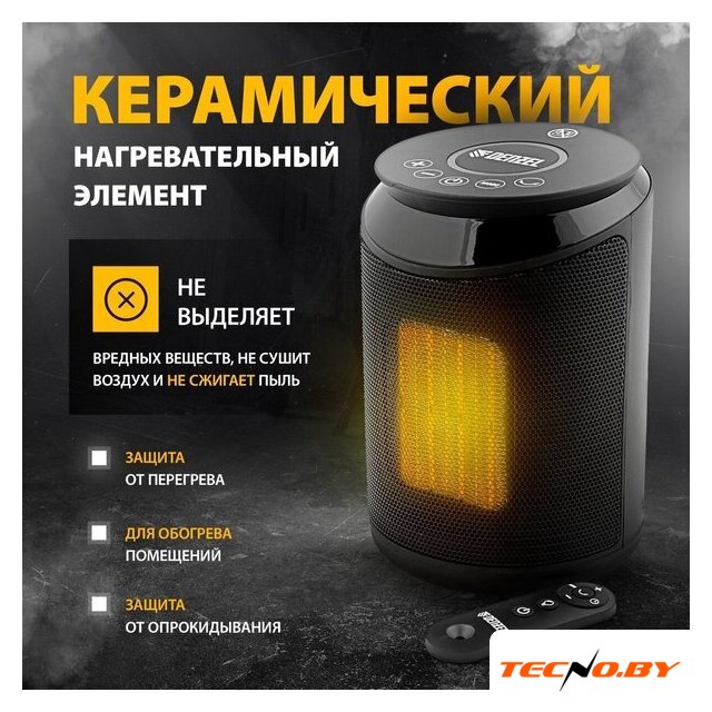тепловентилятор, керамический, 1800 Вт, управление электронное, площадь обогрева 20 м2