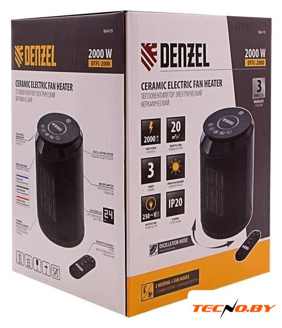 тепловентилятор, 2000 Вт, термостат, управление электронное, площадь обогрева 20 м2